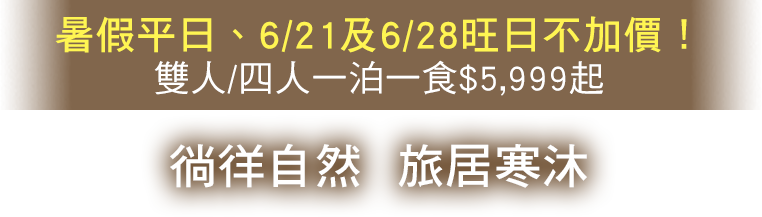 四季風光融入居室之中,搭配寬敞的衛浴空間,打造別具品味、恬淡和諧的慢活天地,房間內以溫潤的木質色調,展現沉穩內斂的人文氣息,於限定房型的露台前遙望蘭陽美景,靜享大自然的魅力。
