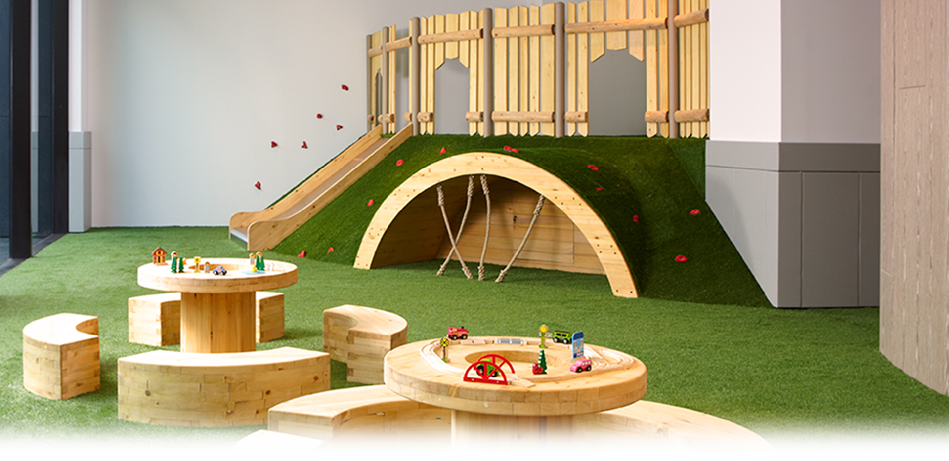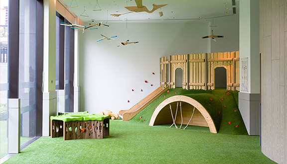 柔軟的綠草皮,不僅將自然氛圍攬入室內,更增添安全性,舒適的觸感,隨意席地而坐都超舒適。