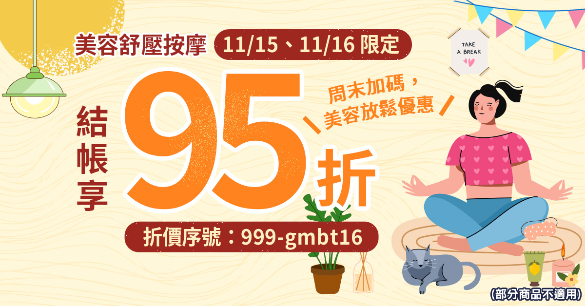 - 活動時間內使用 Gomaji 全平台購買美容舒壓按摩頻道商品完成付款為主,折價序號兩天限量1,000份,一人限用一次,先用先贏。