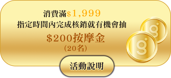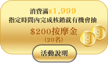 活動B ♦ 核銷滿額抽$200按摩金♦ 活動說明