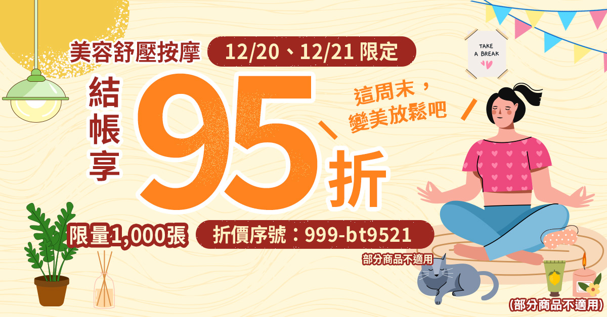 - 活動時間內使用 Gomaji 全平台購買美容舒壓按摩頻道商品完成付款為主,折價序號兩天限量1,000份,一人限用一次,先用先贏。