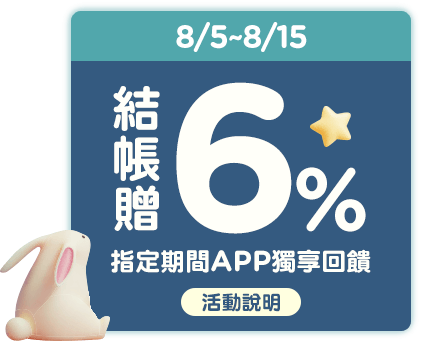 - 如有標註【APP贈點 6%】商品則符合活動資格。