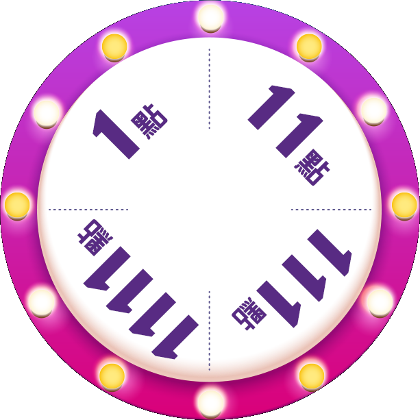 1. 活動為機會中獎,獎項包含 1點、11點、111點、1111點。