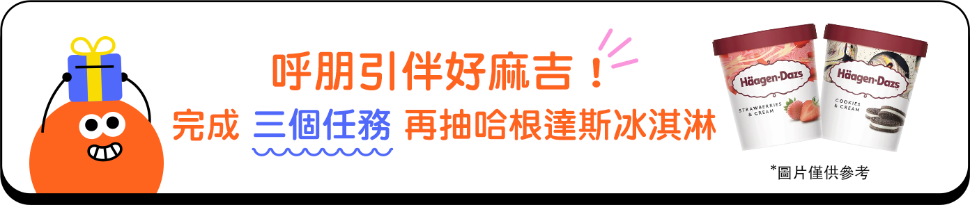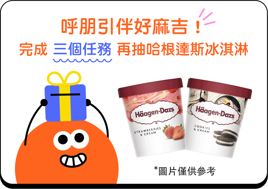 - 活動期間最少完成「麻吉逗陣來」、「就想送麻吉」、「分享最麻吉」、「自我介紹吧!」任選三項,即可符合抽獎活動資格!