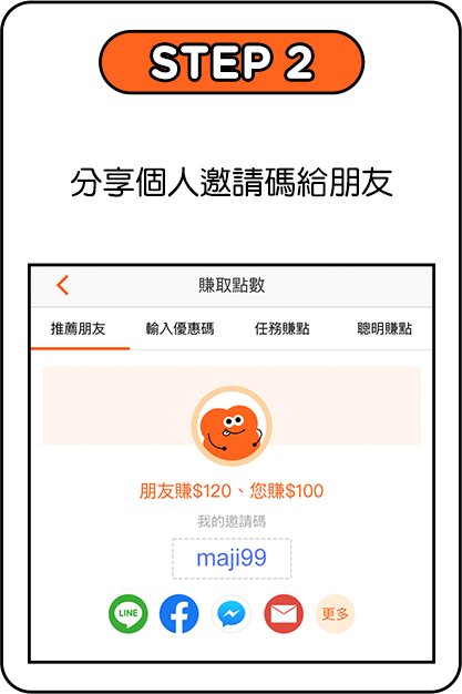 1. 麻吉逗陣來:新朋友輸入您的分享邀請碼一次即符合。