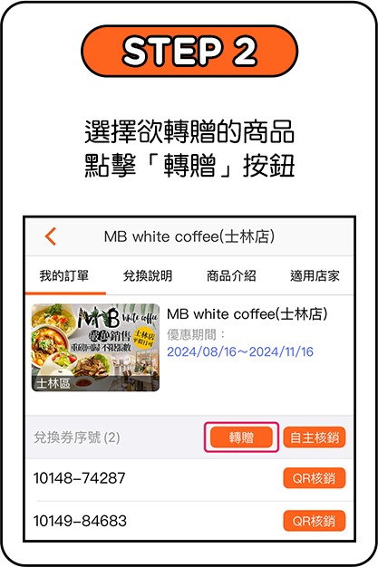 - 點擊「進行轉贈」後,即視同您已轉移該兌換券的使用權利。