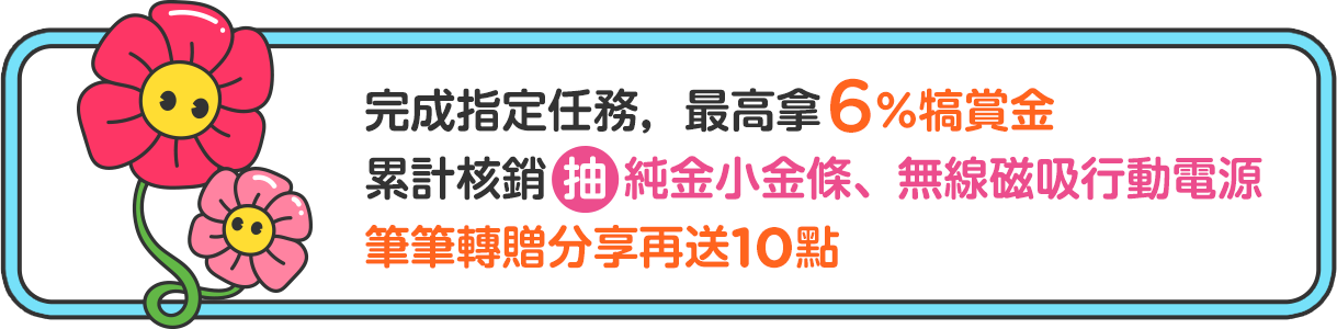 - 需於活動時間內下單完成方具贈點資格;若付款時間內未完成交易,視同放棄贈點權益。