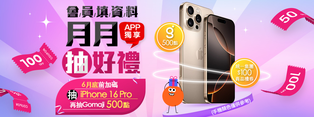 - 獎項詳細內容與規格皆以實物為準,得獎人不得要求獎項更換。贈品皆為原廠正品,贈出後依實物原本保固為主,Gomaji將不受理相關事務。