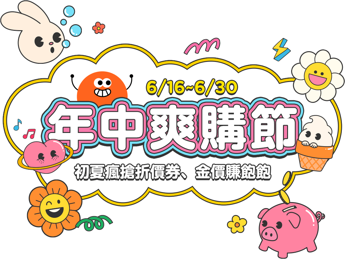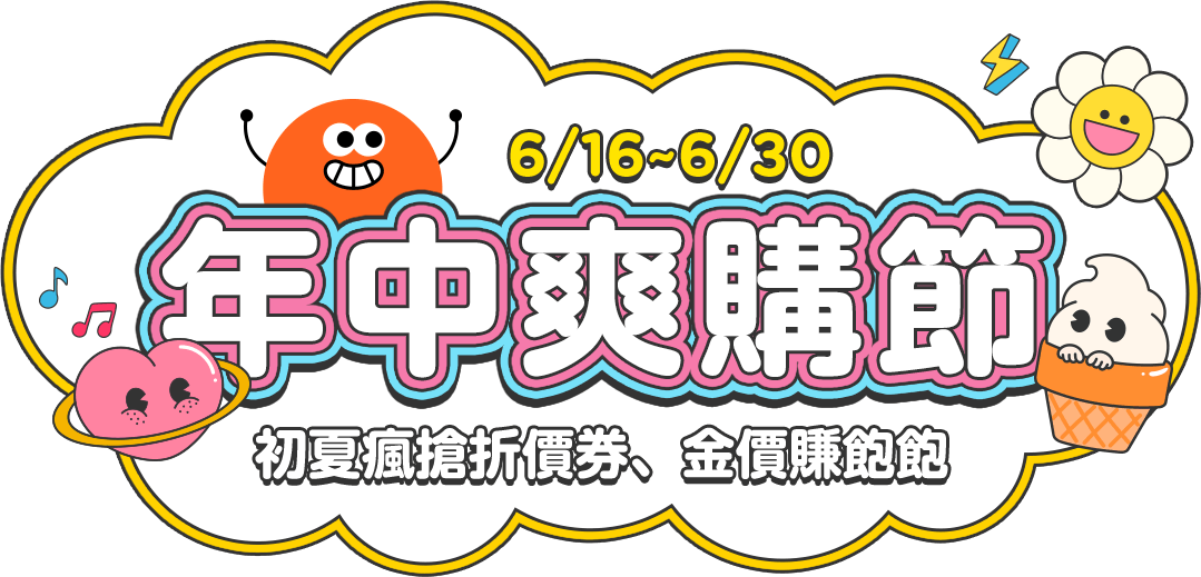 - 折價券適用於消費【年中爽購節】活動頁商品,單筆滿額,結帳輸入折價序號即可折抵對應優惠。