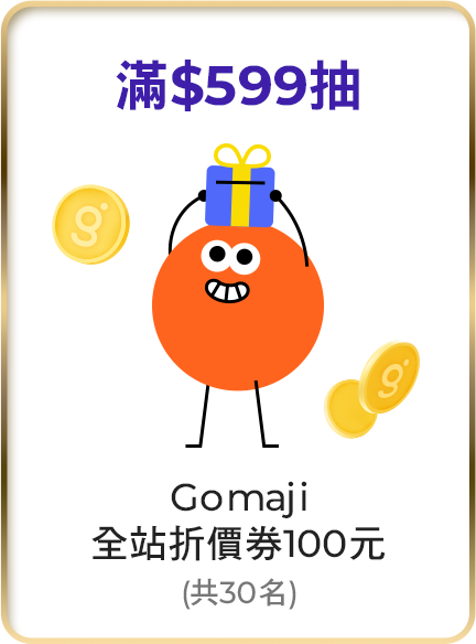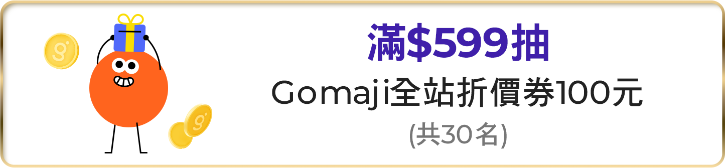 - 滿 NT$ 599抽 Gomaji 全站商品100元折價券,共 30名。