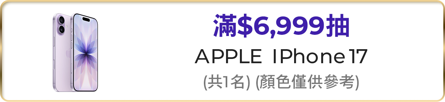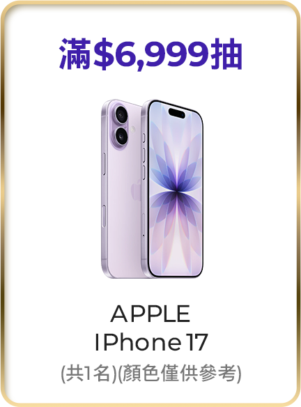 滿 NT$ 6,999抽 Apple iPhone 17 薰衣草紫 256GB (價值約$29,900),共