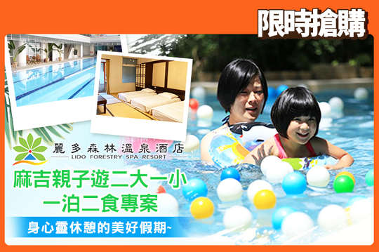 雙人一泊二食,平日依房況限量升等親子主題房,加贈一位120公分以下兒童(含早晚餐)