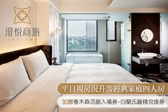 雙人一泊一食平日視房況升等經典家庭四人房,第三及第四人免費(含早餐)