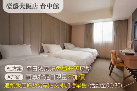 雙人/三人/四人住宿,AC方案平日依房況免費升等房型,A方案再享指定日限量不加價,C方案再享週六限量優惠加價88元,...